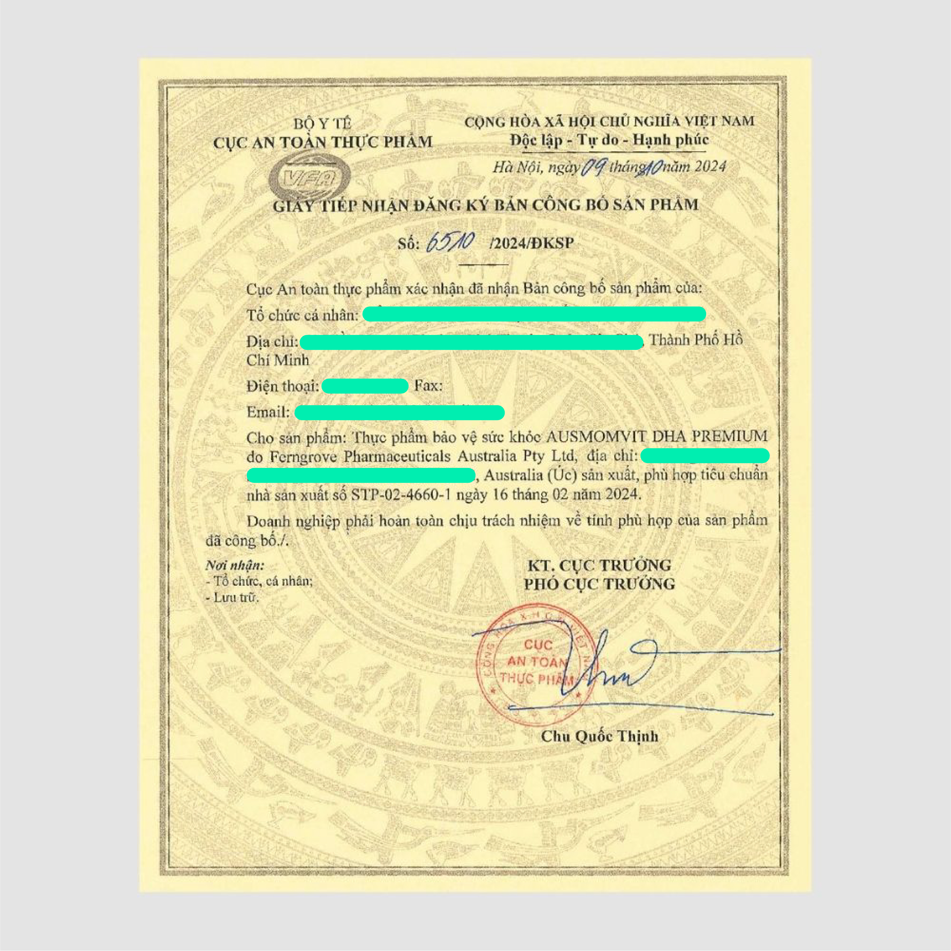 Sản xuất tại: Ferngrove Pharmaceuticals Australia.